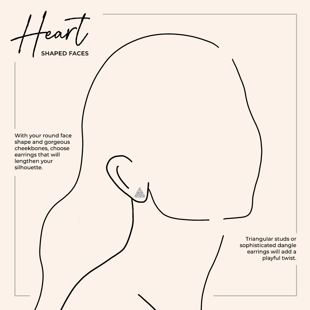 Lovely diamond face shapes can gravitate toward statement earrings that show off your unique shape. We also recommend avoiding larger earrings that land close to your ear — this style may create the illusion of a “shorter” face.