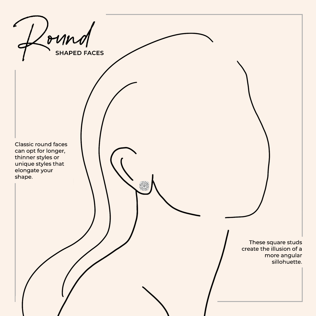 For square face shapes, elegant hoops will add softness to your angular shape, while earrings that hit right at your jawline may accentuate those hard angles. Go for round shapes and soft silhouettes for the most flattering look.