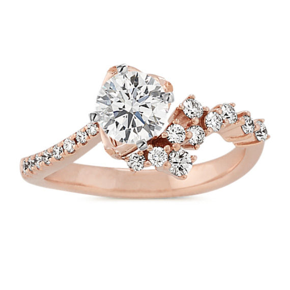 Surprise her with this dazzling natural diamond ring in quality 14 karat rose gold. Eighteen sparkling natural diamonds, at approximately 0.25 carat total weight, beautifully accent the center pear-shaped stone of your choice.
