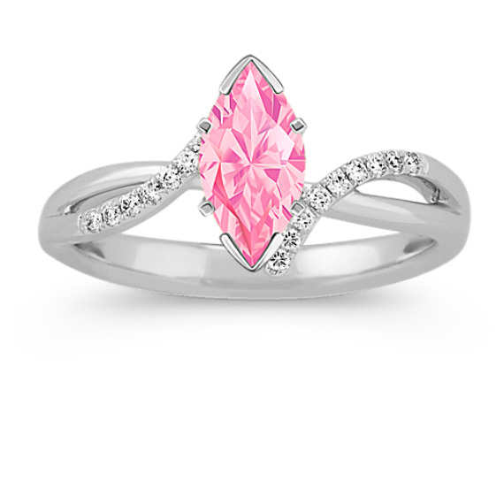 Diamond Ring in 14k White Gold with Marquise Pink Natural Sapphire