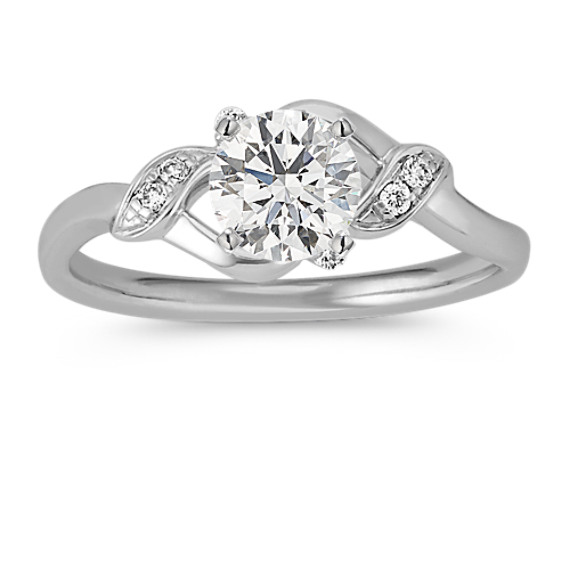 The soft design of this ring is created by the six round natural diamonds, at approximately 0.05 carat total weight, crafted in quality 14 karat white gold in a vine type design. Add the center gemstone of your choice to complete this setting.