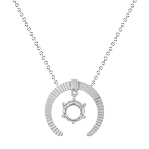 This beautiful pendant is set in quality 14 karat white gold and waits to hold the center round gemstone of your choice at approximately .75 carat. The pendant hangs from a matching 18-inch cable chain and is secured with a lobster clasp. For more information on selecting your center stone, Live Chat or call an online customer service representative at 1-866-467-4263, or visit one of our store locations.
