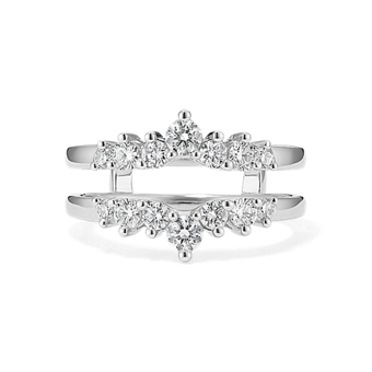 Just like curved rings, ring enhancers or guards are a popular option for a wedding band. Make your engagement ring a statement piece with our beautifully curated collection of diamond ring guards to help transform the aesthetic of your wedding ring enhancers.