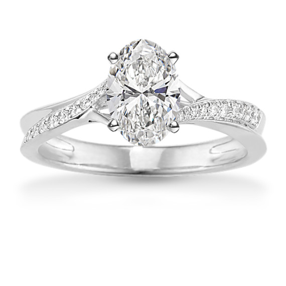 Make the center stone of your dreams the star of this beautiful platinum engagement ring. Rows of natural diamond pavé wind their way up the band, drawing attention towards the center of the ring. A dainty natural diamond accent adds a bit of sparkle to either side of the cathedral setting. For more information on selecting your center stone, live chat online, call a customer service representative at 1-866-467-4263, or visit one of our store locations.
