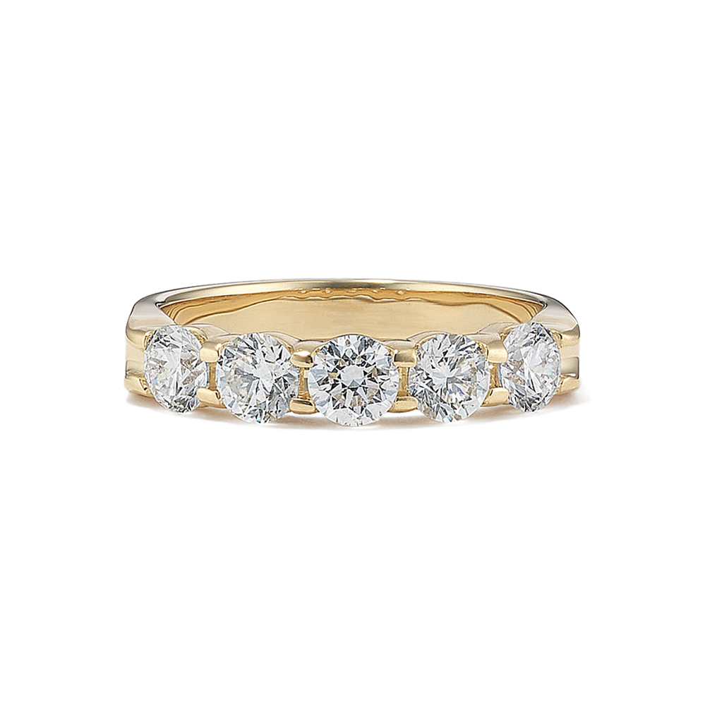This 14-karat yellow gold engagement ring features a raised geometric design and a shimmering hidden detail with ten natural diamond accents along each side. It’s an elegant way to showcase the center stone of your dreams. For more information on selecting your center stone, live chat online, call a customer service representative at 1-866-467-4263, or visit one of our store locations.