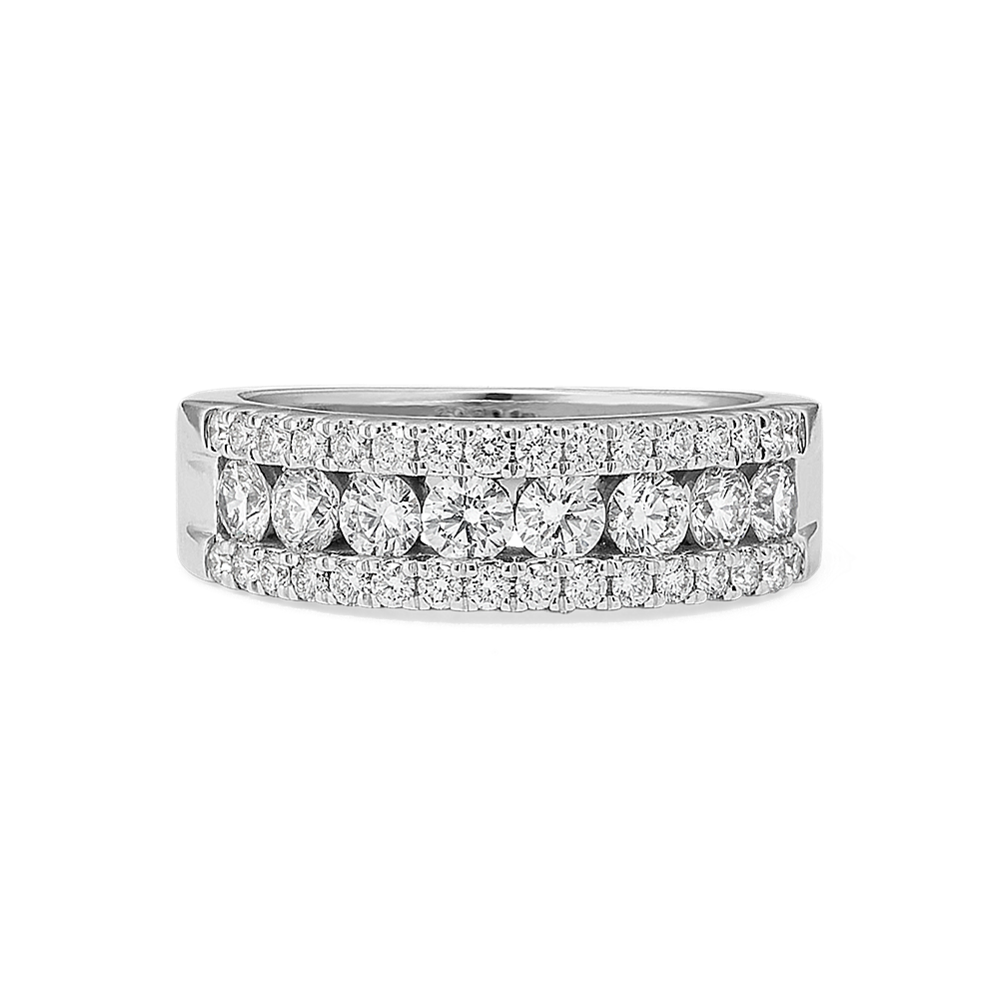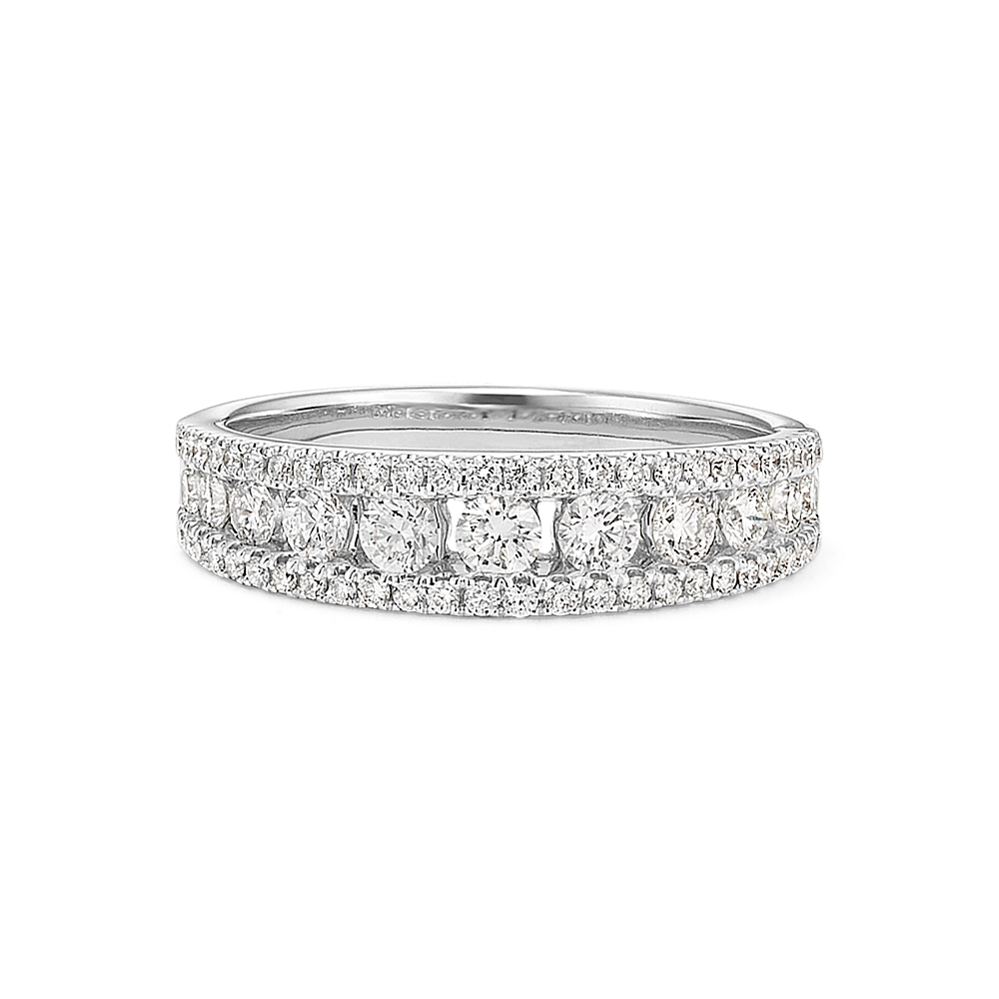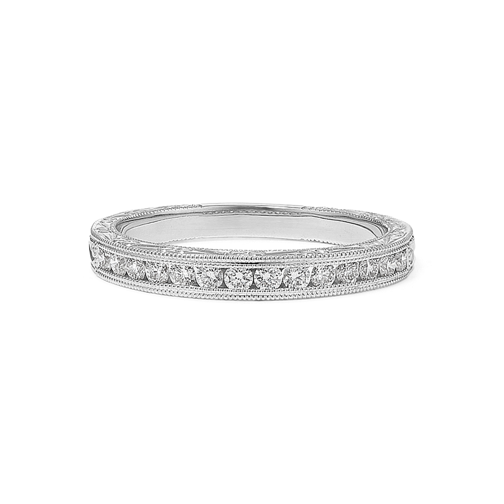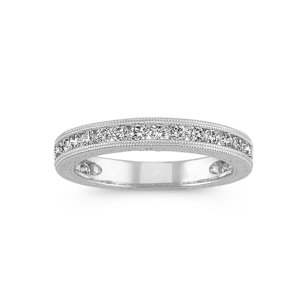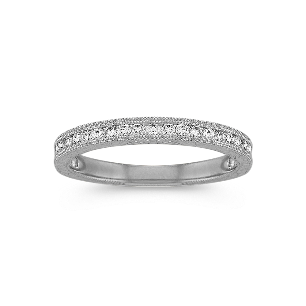 Neat rows of channel-set natural diamonds with graduated 14-karat white gold borders are waiting to add sparkle and fire to the center stone of your choice in this bold engagement ring setting. Add a custom engraving for a personal touch.