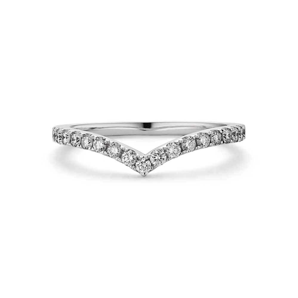 Natural diamond accents line this chevron engagement ring with sparkle and fire, giving way to a natural diamond cluster at the middle waiting to accent the center stone of your dreams with its unique pointed shape. Crafted in 14-karat white gold, it’s crowned with a delicate row of 14-karat yellow gold milgrain for a sophisticated two-tone look.