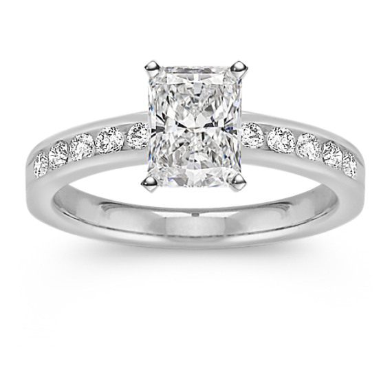 This 14-karat white gold engagement ring features a channel-set band with sparkling natural diamonds. Add the center stone of your dreams to complete this classic look. For more information on selecting your center stone, live chat online, call a customer service representative at 1-866-467-4263, or visit one of our store locations.