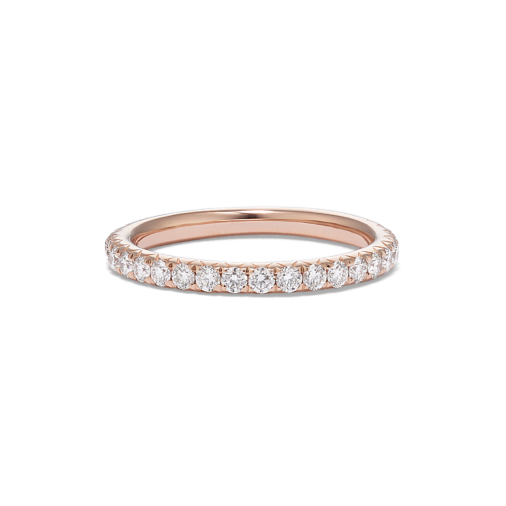 This French pavé engagement ring features natural diamonds for a classic, elegant look. Crafted in romantic 14-karat rose gold, it’s the perfect backdrop for the center stone of your dreams. For more information on selecting your center stone, live chat online, call a customer service representative at 1-866-467-4263, or visit one of our store locations.