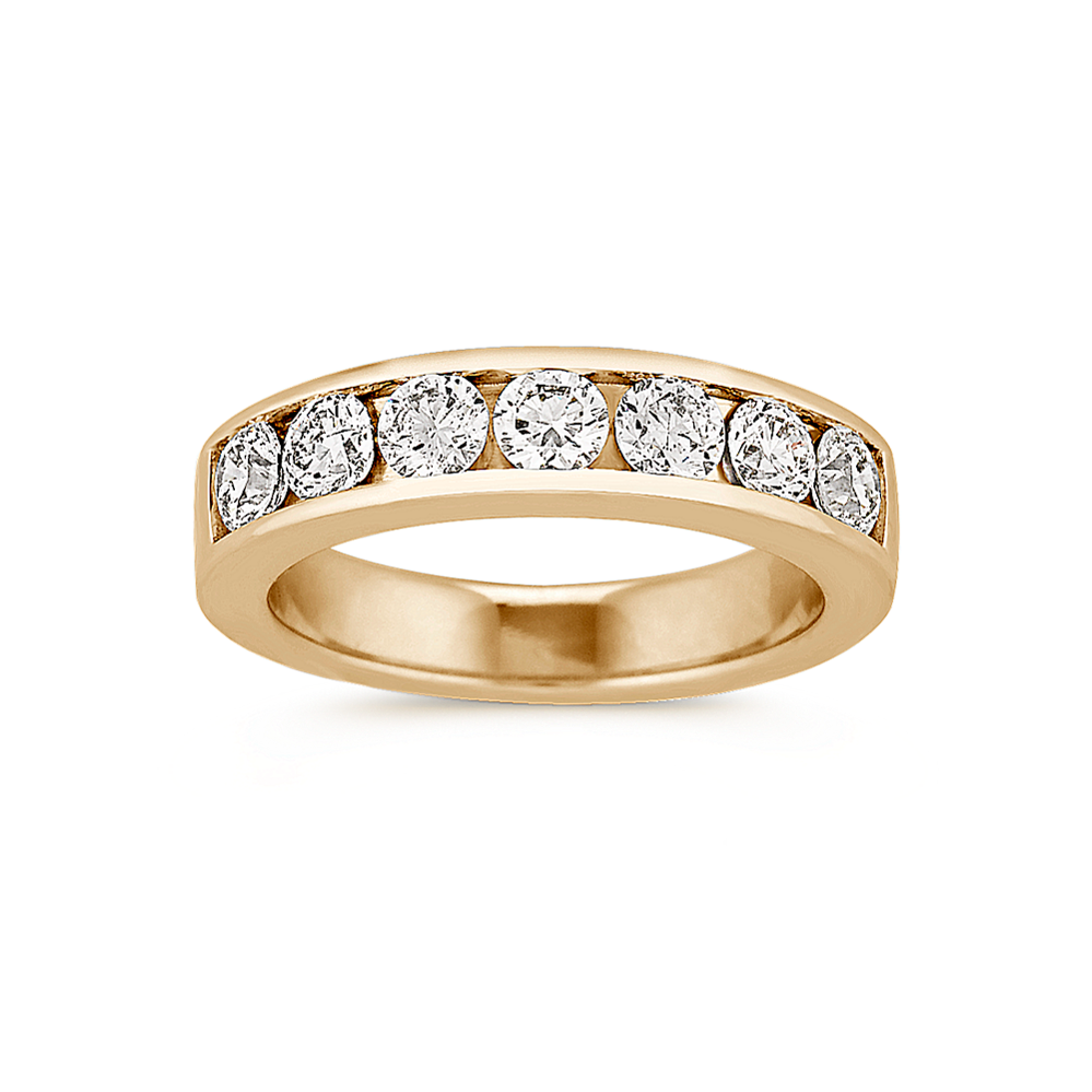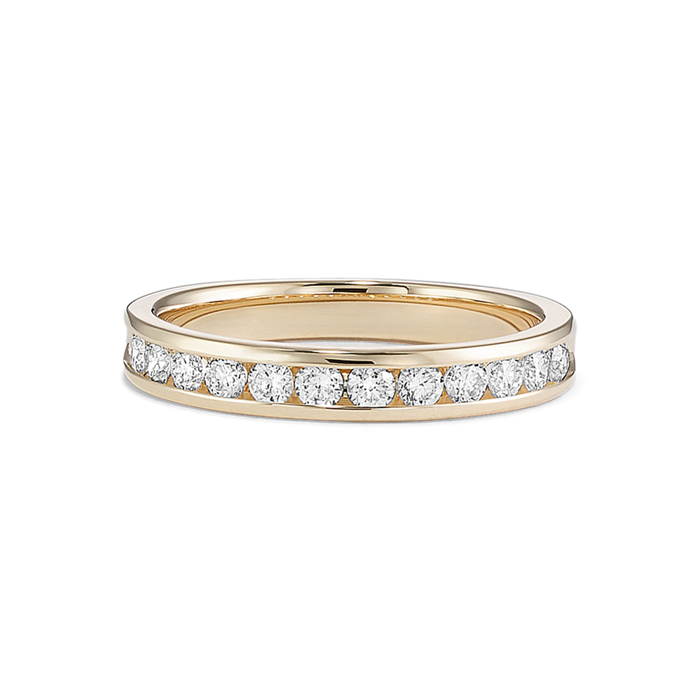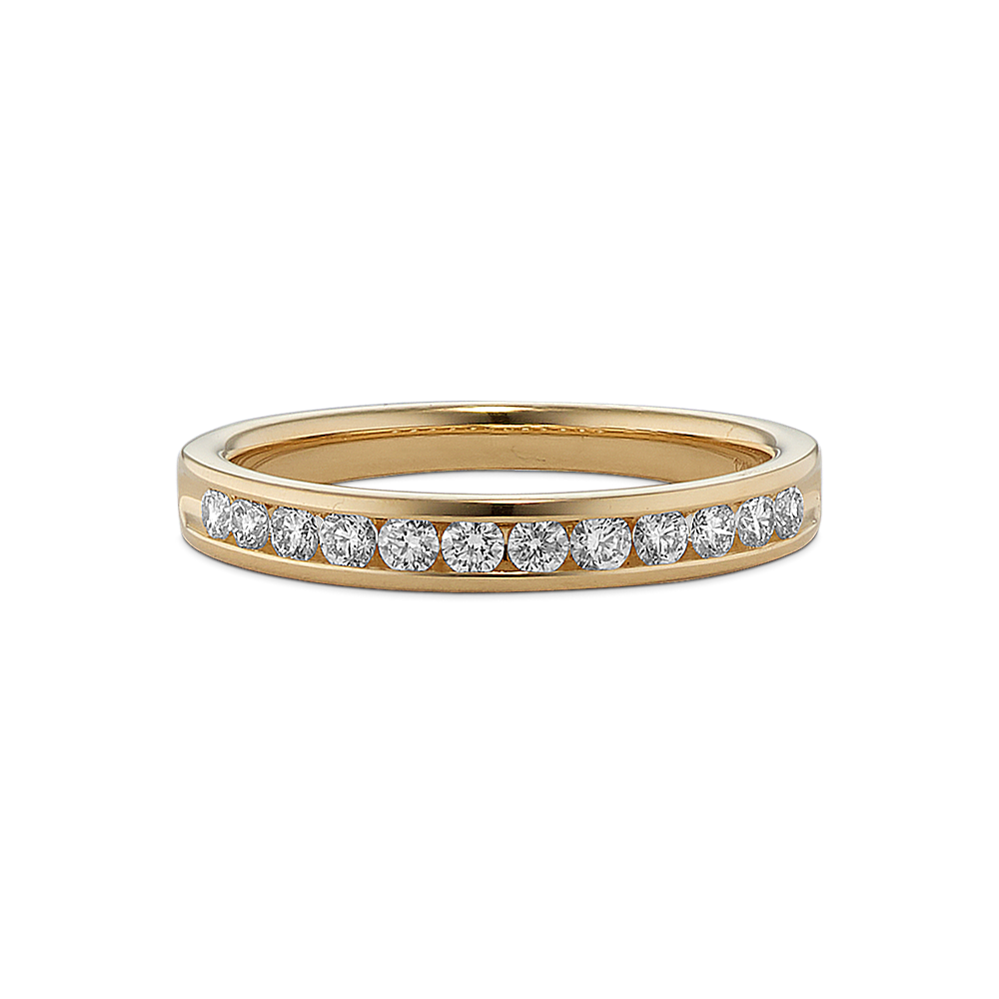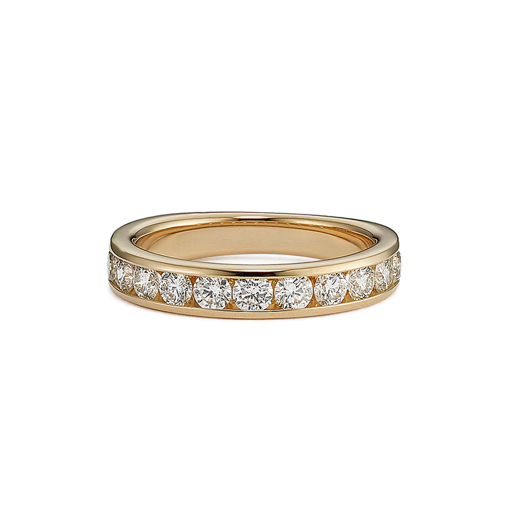 The band of this 14-karat yellow gold engagement ring features channel-set natural diamonds for a look that is simple and beautiful. Add the center stone of your dreams to the cathedral setting to make it complete. For more information on selecting your center stone, live chat online, call a customer service representative at 1-866-467-4263, or visit one of our store locations.