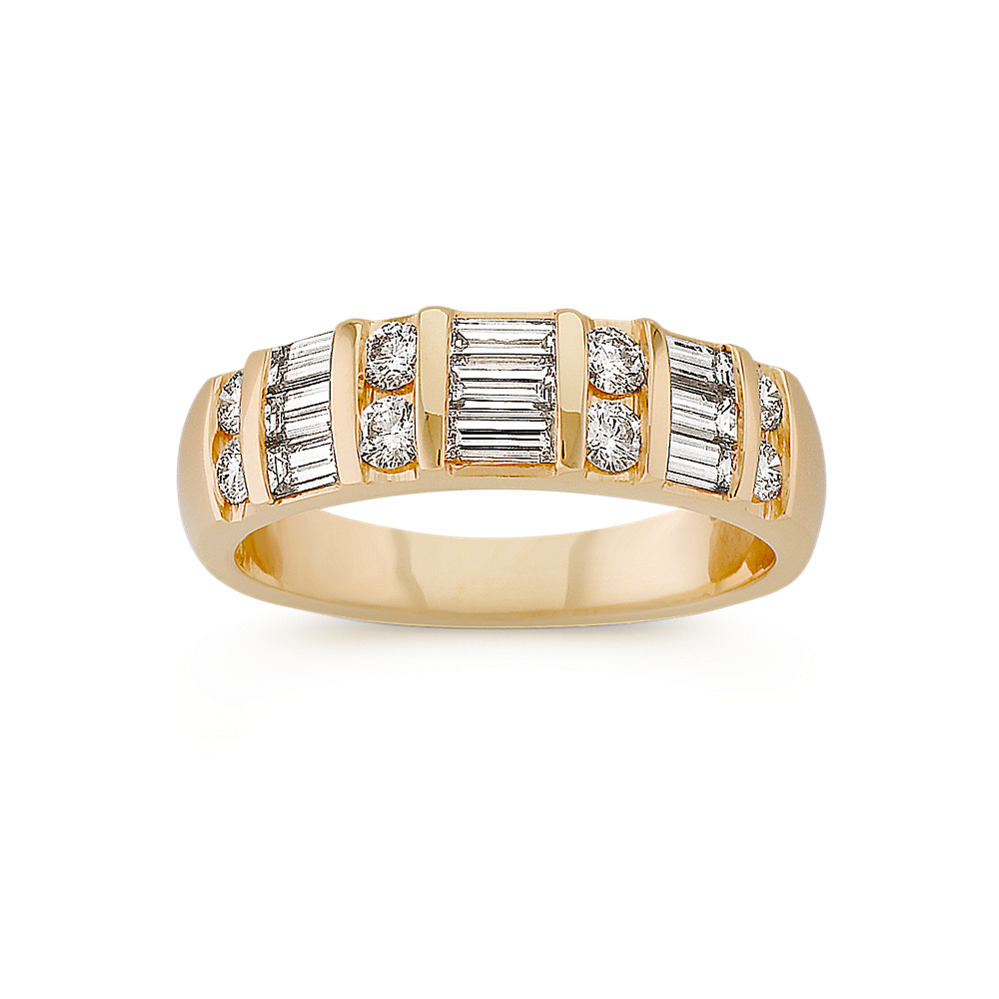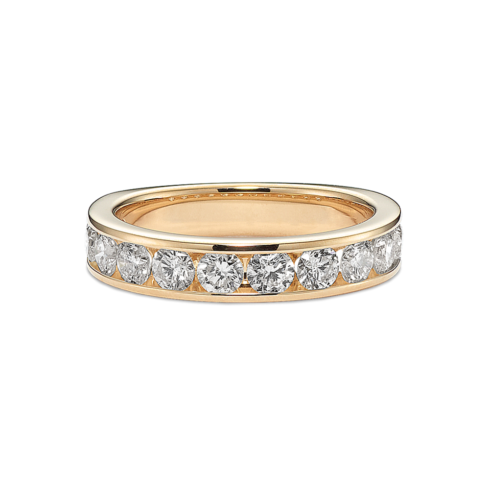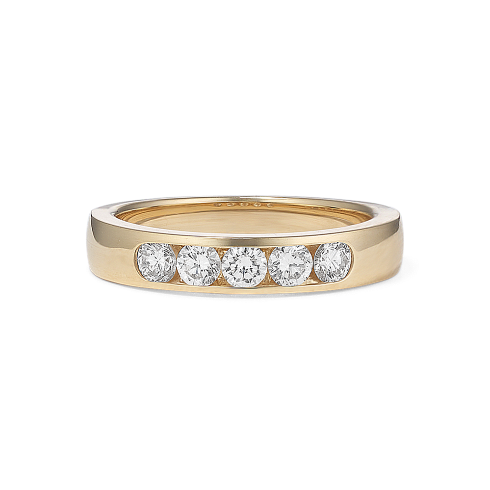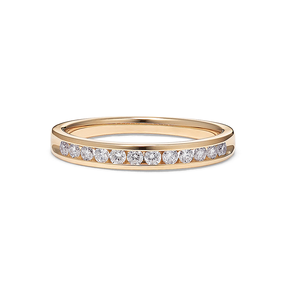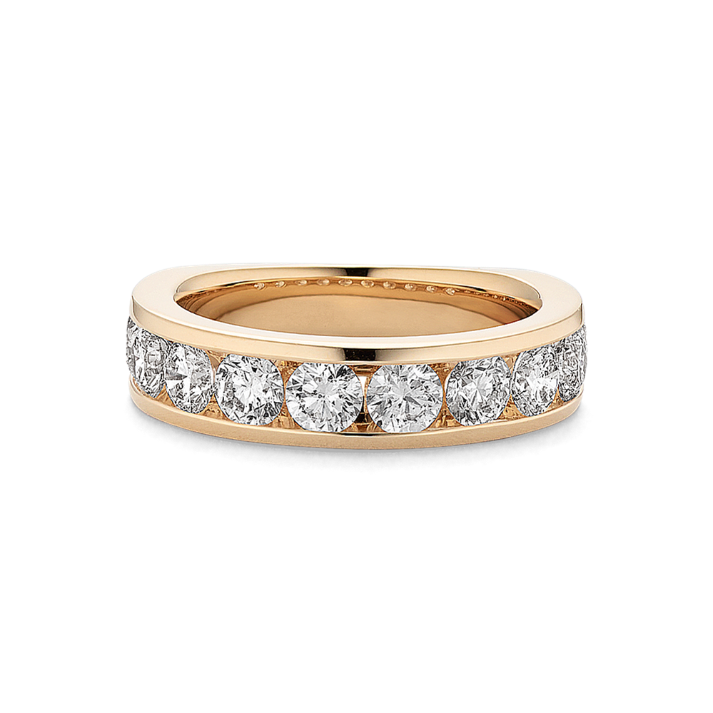 The band of this 14-karat yellow gold engagement ring features channel-set natural diamonds for a look that is simple and beautiful. Add the center stone of your dreams to the cathedral setting to make it complete. For more information on selecting your center stone, live chat online, call a customer service representative at 1-866-467-4263, or visit one of our store locations.