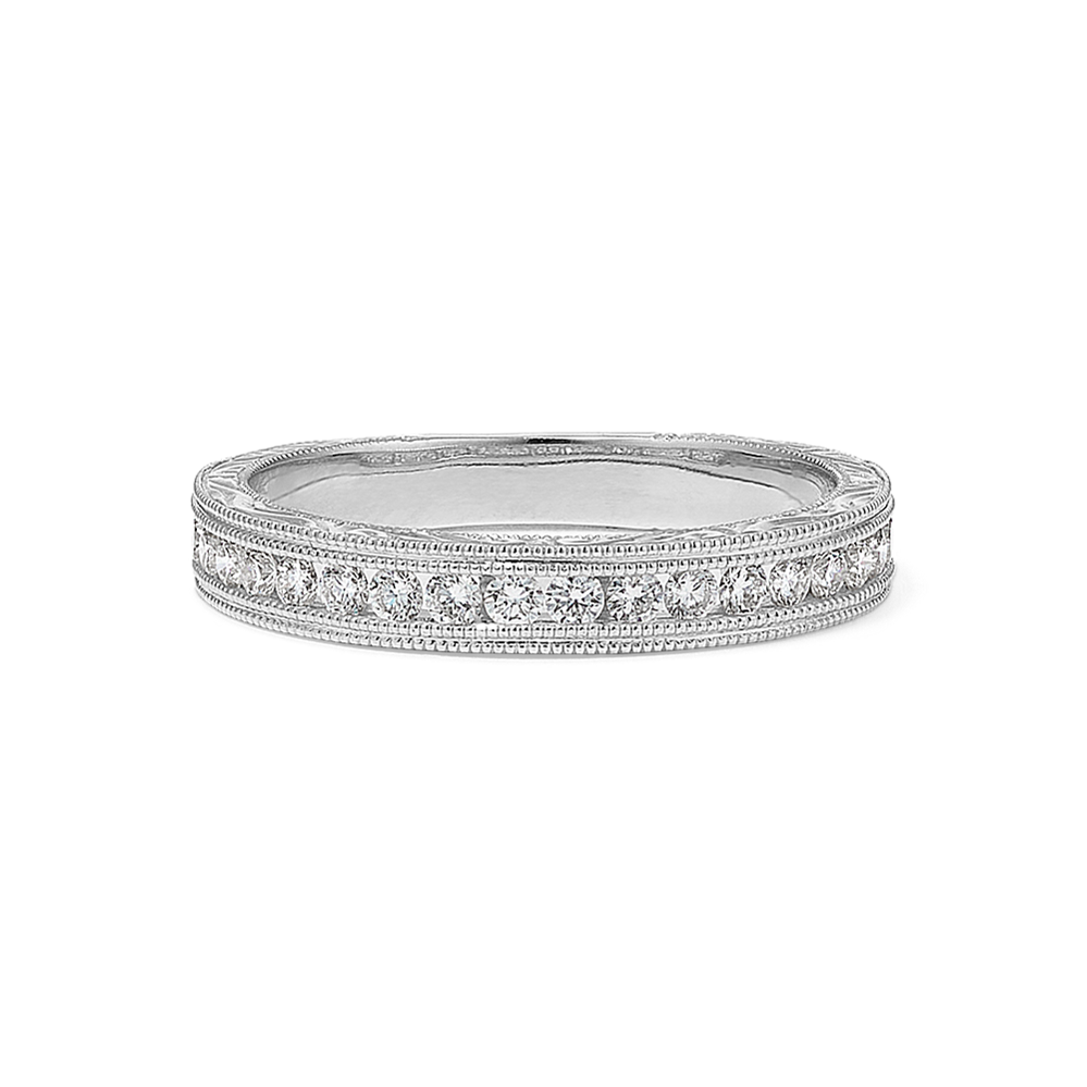 The band of this 14-karat white gold engagement ring features channel-set natural diamonds for a look that is simple and beautiful. Add the center stone of your dreams to the cathedral setting to make it complete. For more information on selecting your center stone, live chat online, call a customer service representative at 1-866-467-4263, or visit one of our store locations.