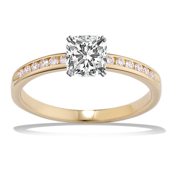 A glistening channel of natural diamond accents is ready to lend hand-matched sparkle and fire to the center stone of your dreams in this classic 14-karat yellow gold engagement ring setting. For more information on selecting your center stone, Live Chat or call an online customer service representative at 1-866-467-4263, or visit one of our store locations.