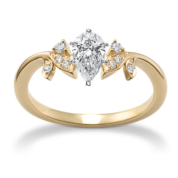 This engagement ring features leaves encrusted with natural diamonds on either side of the setting for a beautiful botanical look. Complete this stunning 14-karat yellow gold ring with the center stone of your dreams. For more information on selecting your center stone, live chat online, call a customer service representative at 1-866-467-4263, or visit one of our store locations.