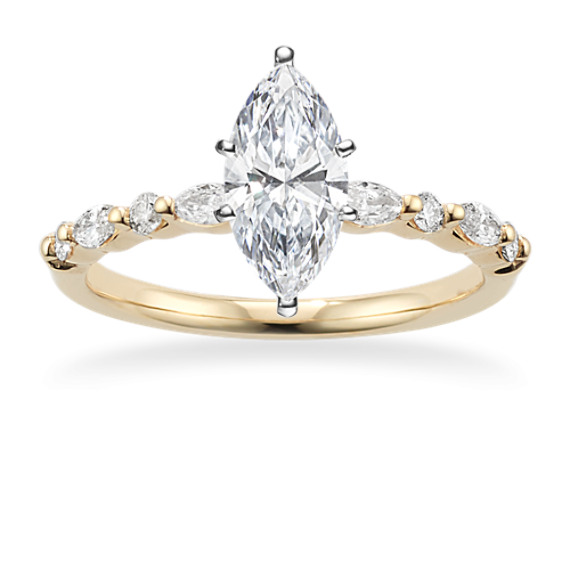 Natural diamond accents in round and marquise shapes give the band of this engagement ring a beautiful scalloped look with plenty of sparkle. Crafted in warm 14-karat yellow gold, it makes an elegant backdrop for the center stone of your dreams. For more information on selecting your center stone, live chat online, call a customer service representative at 1-866-467-4263, or visit one of our store locations.