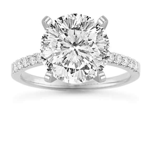 Natural diamond pavé shines with superior sparkle and fire in the band of this beautiful engagement ring setting, creating the ideal backdrop for the center stone of your dreams. Crafted in bright 14-karat white gold, it features a cathedral design. For more information on selecting your center stone, Live Chat online, call a customer service representative at 1-866-467-4263, or visit one of our store locations.