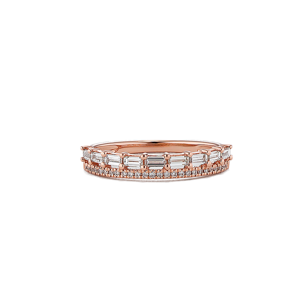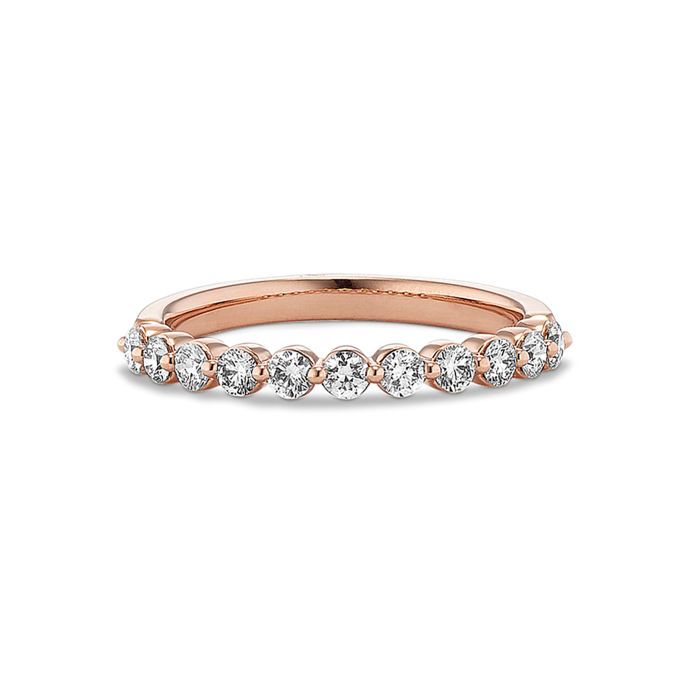 Natural diamond pavé shines with superior sparkle and fire in the band of this beautiful 14-karat rose gold engagement ring setting, creating the ideal backdrop for the center stone of your dreams. For more information on selecting your center stone, Live Chat online, call a customer service representative at 1-866-467-4263, or visit one of our store locations.