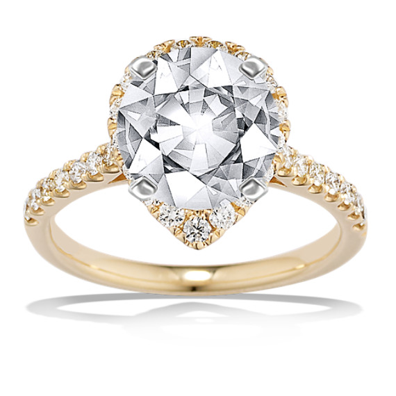 Natural diamond pavé shines with superior sparkle and fire in the band and halo of this beautiful 14-karat yellow gold engagement ring, creating the ideal backdrop for the pear-shaped center stone of your dreams. For more information on selecting your center stone, live chat online, call a customer service representative at 1-866-467-4263, or visit one of our store locations.