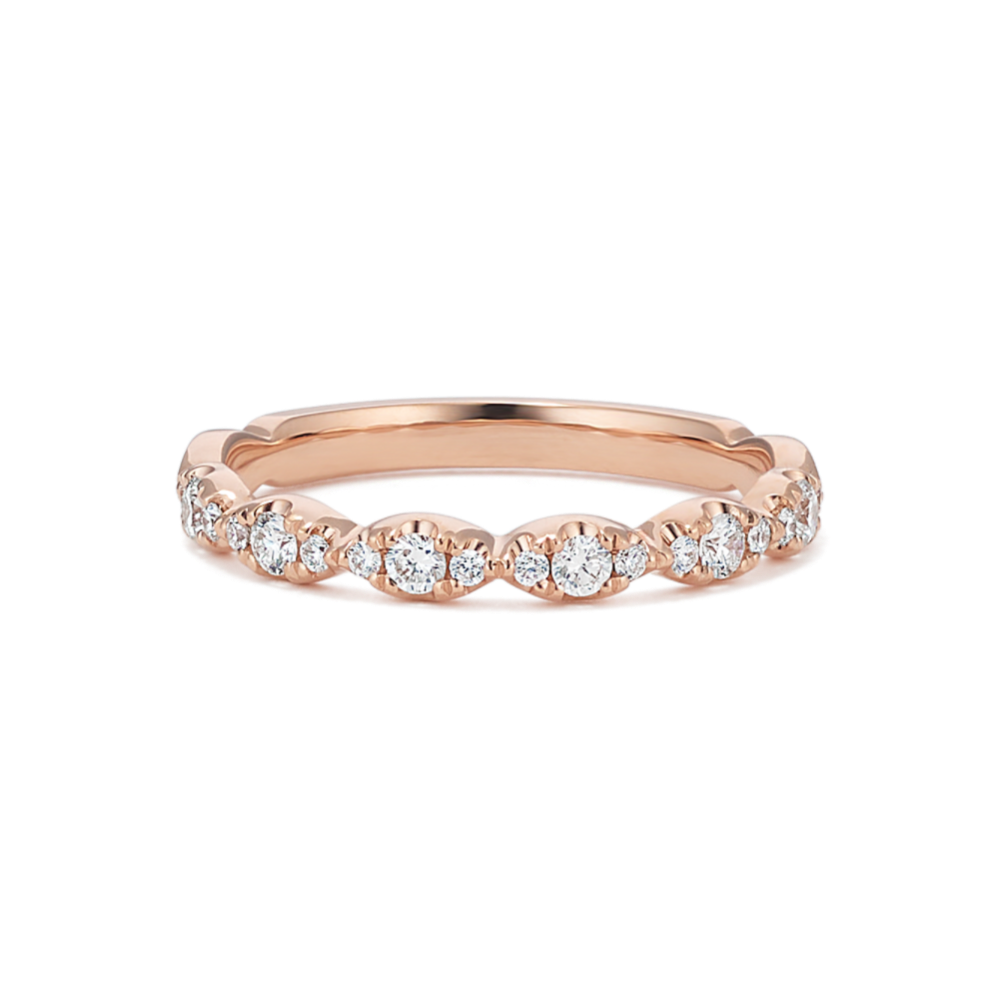 Natural diamond accents give the band of this engagement ring a beautiful, scalloped look. Crafted in romantic 14-karat rose gold, it features a cathedral design that is ready to forever hold the center stone of your dreams. For more information on selecting your center stone, live chat online, call a customer service representative at 1-866-467-4263, or visit one of our store locations.