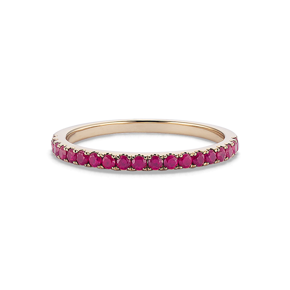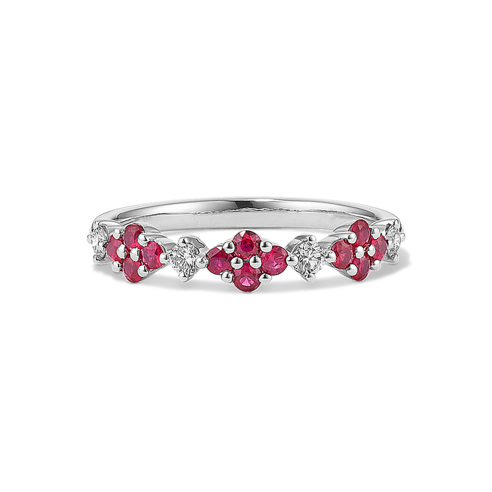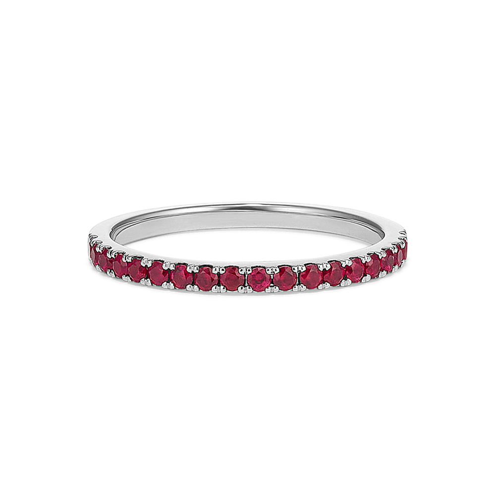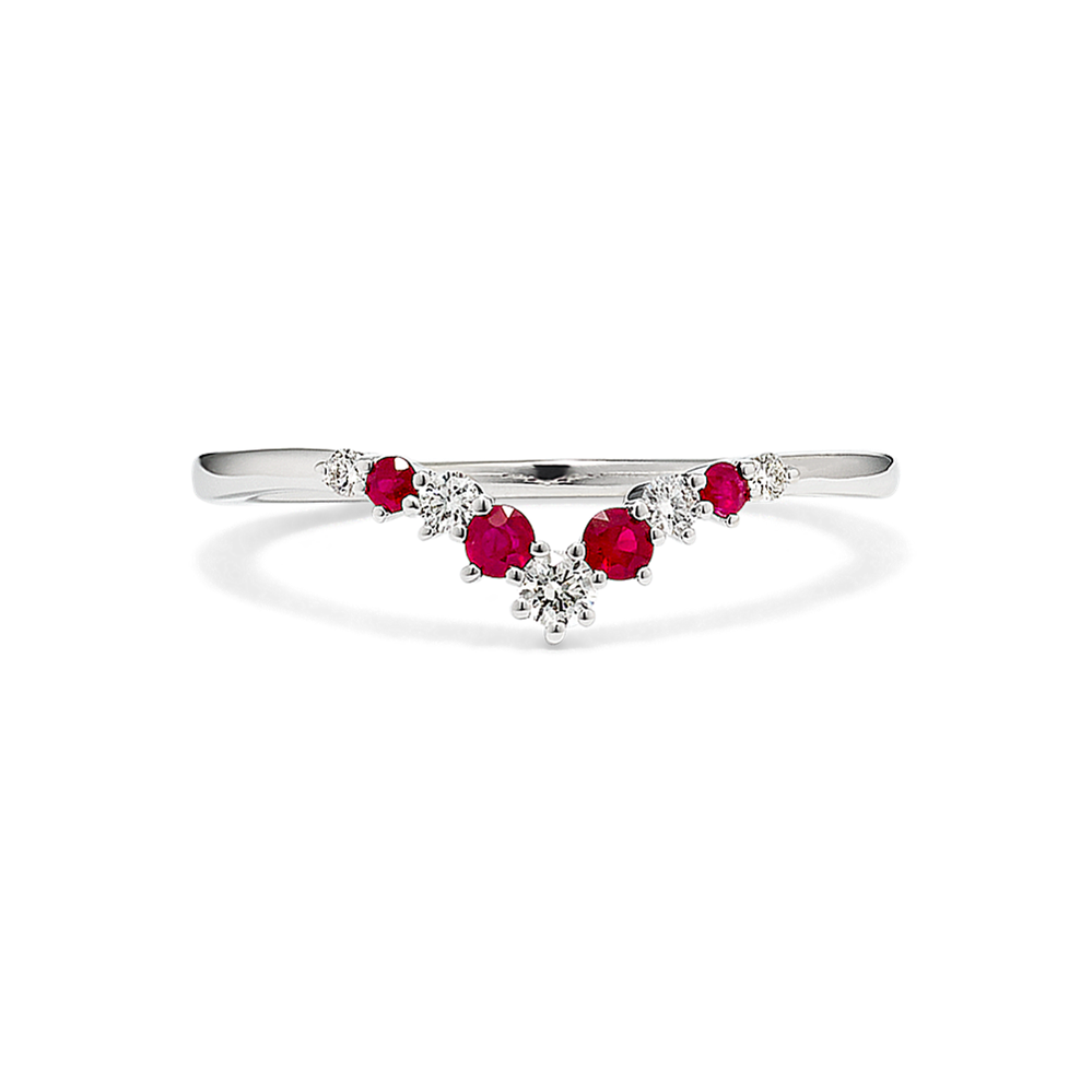 Two pear-shaped natural rubies, at approximately .55 carat TW, add brilliant color while 14 round pavé-set natural diamonds, at approximately .11 carat TW, add the perfect sparkle to this beautiful engagement ring. The ring is crafted from quality 14 karat white gold and the total gem weight is approximately .66 carat. Add the center stone of your choice to complete this gorgeous look.