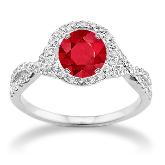 Embody Old Hollywood glamour with this halo engagement ring, featuring beautiful natural diamond pavé and an infinity band for a twist on the classic split-shank halo look. Crafted in bright 14-karat white gold, it has a sparkling hidden detail under the halo with additional natural diamond accents visible on both sides of the ring. Add the round center stone of your dreams to complete this glamorous design. For more information on selecting your center stone, live chat online, call a customer service representative at 1-866-467-4263, or visit one of our store locations.