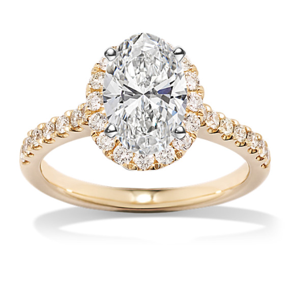 Surround the oval center stone of your dreams with beautiful sparkle in this halo engagement ring. It features natural diamond pavé throughout, including along the profile for a touch of hidden sparkle. This gorgeous ring is crafted with care in warm 14-karat yellow gold. For more information on selecting your center stone, live chat online, call a customer service representative at 1-866-467-4263, or visit one of our store locations.