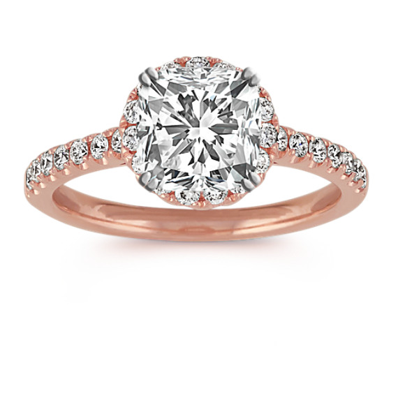 Natural diamond pavé shines with superior sparkle and fire in the band and halo of this beautiful 14-karat rose gold engagement ring, creating the ideal backdrop for the round center stone of your dreams. For more information on selecting your center stone, live chat online, call a customer service representative at 1-866-467-4263, or visit one of our store locations.