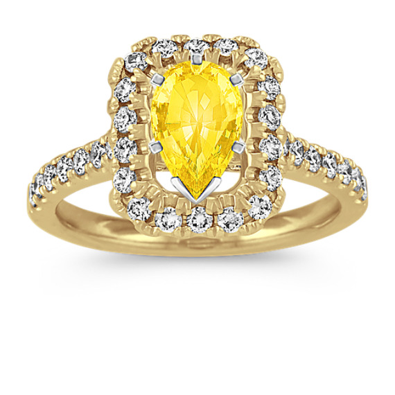 Natural diamond pavé shines with superior sparkle and fire in the band and halo of this beautiful 14-karat yellow gold engagement ring, creating the ideal backdrop for the emerald cut center stone of your dreams. For more information on selecting your center stone, live chat online, call a customer service representative at 1-866-467-4263, or visit one of our store locations.