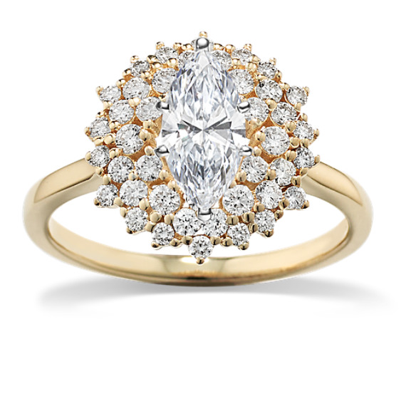 Like the plentiful petals of a water lily, natural diamond accents form a floral halo blooming with hand-matched sparkle and fire in this exquisite engagement ring setting. Crafted in warm 14-karat yellow gold, add the round center stone of your choice to complete this dreamy design. For more information on selecting your center stone, Live Chat online, call a customer service representative at 1-866-467-4263, or visit one of our store locations.
