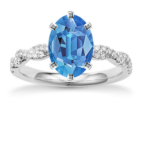 Lace Infinity Engagement Ring in Platinum with Blue Oval Lab-Grown Diamond