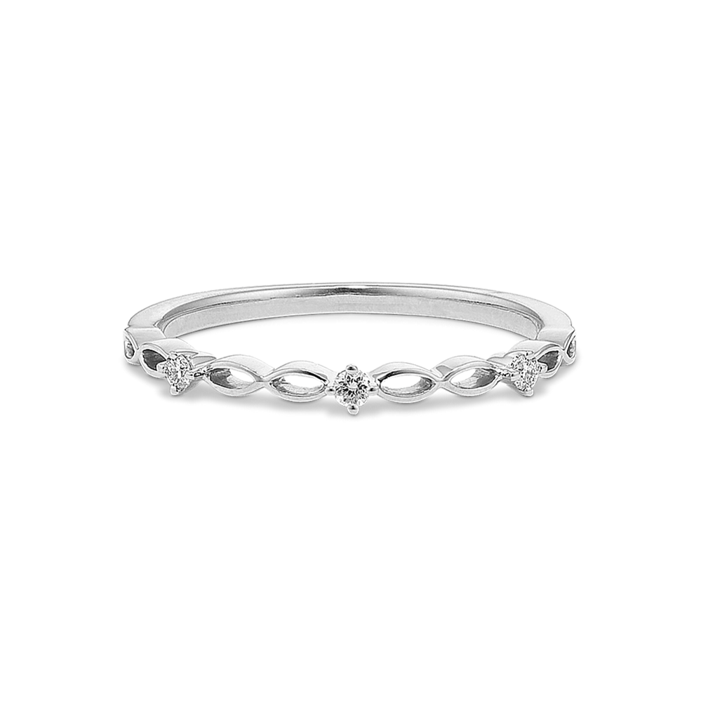 Two rows of natural diamond pavé twist into a lacy infinity band in this beautiful engagement ring design. Crafted in bright 14-karat white gold, it makes an ideal backdrop for the center stone of your dreams. For more information on selecting your center stone, live chat online, call a customer service representative at 1-866-467-4263, or visit one of our store locations.