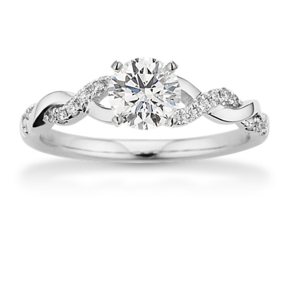 Like the winding branches of a willow tree, natural diamond pavé and bright 14-karat white gold twist into a beautiful infinity design along the band of this engagement ring. The diamond accents shine with superior sparkle and fire, creating the ideal backdrop for the center stone of your dreams. For more information on selecting your center stone, Live Chat online, call a customer service representative at 1-866-467-4263, or visit one of our store locations.