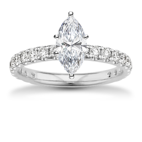 This natural diamond pavé engagement ring offers a classic look and beautiful sparkle. Crafted with care in bright 14-karat white gold, it just needs the center stone of your dreams to make it complete. For more information on selecting your center stone, live chat online, call a customer service representative at 1-866-467-4263, or visit one of our store locations.