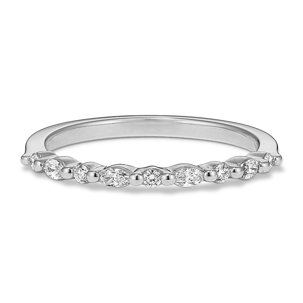 Natural diamond accents in round and marquise shapes give the band of this engagement ring a beautiful scalloped look with plenty of sparkle. Crafted in bright 14-karat white gold, it makes an elegant backdrop for the center stone of your dreams. For more information on selecting your center stone, live chat online, call a customer service representative at 1-866-467-4263, or visit one of our store locations.