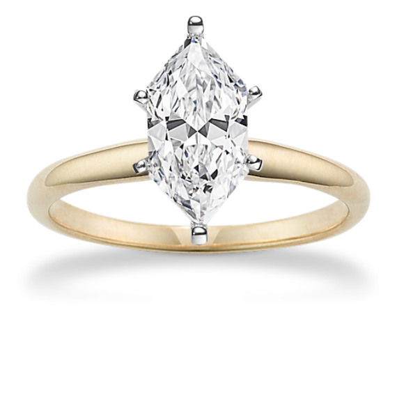 The center stone of your dreams will shine in this solitaire engagement ring setting. Crafted in warm 14-karat yellow gold, it features a secure split shank design. For more information on selecting your center stone, live chat online, call a customer service representative at 1-866-467-4263, or visit one of our store locations.