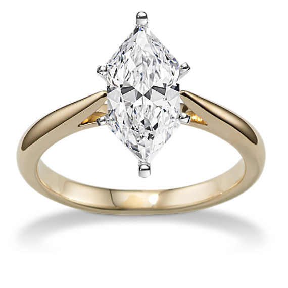 Show off the center stone of your dreams with this beautiful cathedral engagement ring. Crafted in warm 14-karat yellow gold, it features a gently graduated design, becoming thinner towards the top of the ring as it draws attention towards the center. For more information on selecting your center stone, live chat online, call a customer service representative at 1-866-467-4263, or visit one of our store locations.
