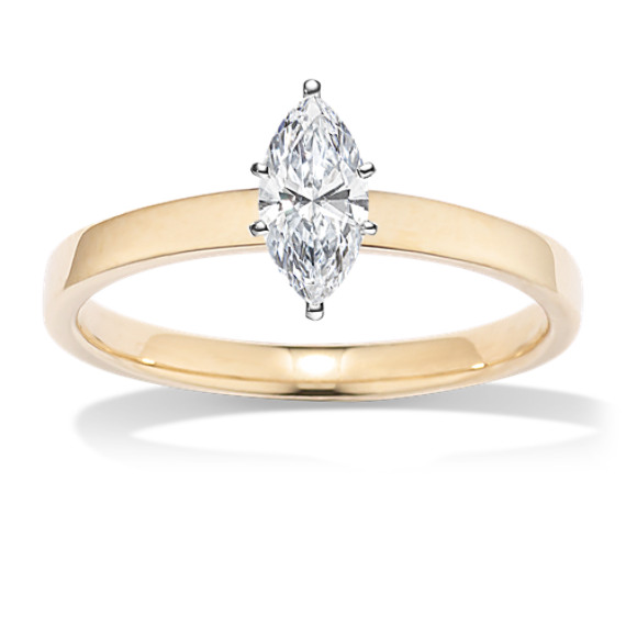 This solitaire engagement ring features a flat outer edge for a modern take on a classic style. Crafted in warm 14-karat yellow gold, this beautiful ring is the perfect way to showcase the center stone of your dreams. For more information on selecting your center stone, live chat online, call a customer service representative at 1-866-467-4263, or visit one of our store locations.