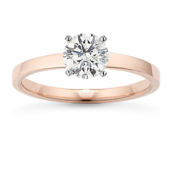 This solitaire engagement ring features a flat outer edge for a modern take on a classic style. Crafted in romantic 14-karat rose gold, this beautiful ring is the perfect way to showcase the center stone of your dreams. For more information on selecting your center stone, live chat online, call a customer service representative at 1-866-467-4263, or visit one of our store locations.