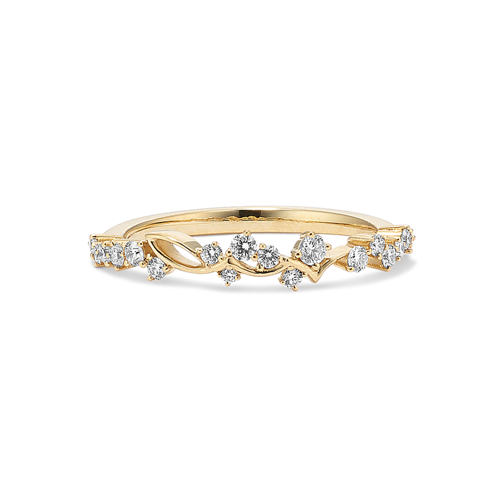 This engagement ring features a bold 14-karat yellow gold band, offering shine and warmth alongside the center stone of your dreams. Its asymmetrical design will hold elongated shapes, such as marquise and oval, at a diagonal position for a look that is uniquely you. For more information on selecting your center stone, Live Chat online, call a customer service representative at 1-866-467-4263, or visit one of our store locations.