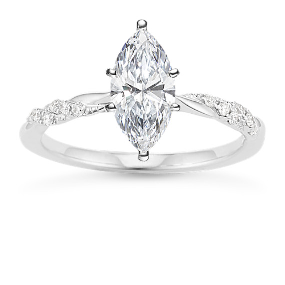 Natural diamond pavé highlights the beautiful twist shape of this 14-karat white gold engagement ring in a design that will sparkle alongside the center stone of your dreams. For more information on selecting your center stone, live chat online, call a customer service representative at 1-866-467-4263, or visit one of our store locations.