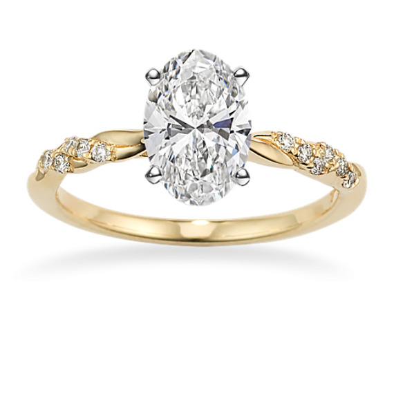 Natural diamond pavé highlights the beautiful twist shape of this 14-karat yellow gold engagement ring in a design that will sparkle alongside the center stone of your dreams. For more information on selecting your center stone, live chat online, call a customer service representative at 1-866-467-4263, or visit one of our store locations.