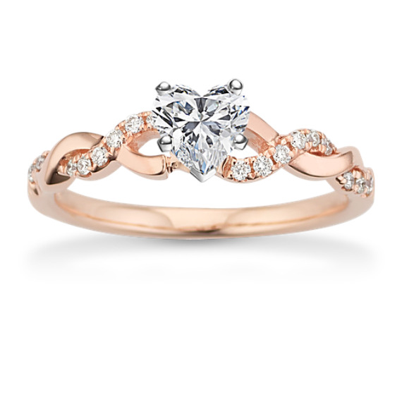 Like the winding branches of a willow tree, natural diamond pavé and romantic 14-karat rose gold twist into a beautiful infinity design along the band of this engagement ring. The diamond accents shine with superior sparkle and fire, creating the ideal backdrop for the center stone of your dreams. For more information on selecting your center stone, Live Chat online, call a customer service representative at 1-866-467-4263, or visit one of our store locations.