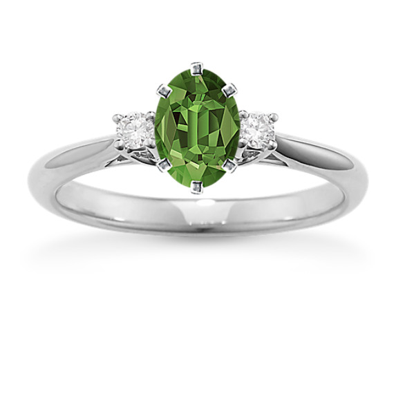 Epoch Engagement Ring (0.05 tcw Diamond Accents) with Oval Green Natural Sapphire