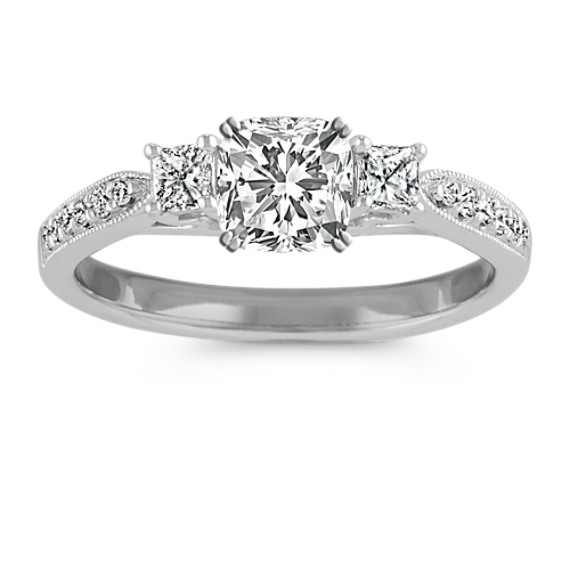 Three-Stone Princess Cut and Round Diamond Engagement Ring