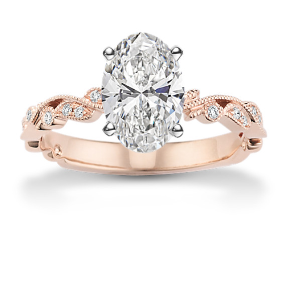 Intricate milgrain detailing forms a lacy, botanical design along the band of this vintage-inspired engagement ring. Crafted in romantic 14-karat rose gold, the design features natural diamond accents for a dash of sparkle. Add the center stone of your choice to complete this dreamy ring. For more information on selecting your center stone, live chat online, call a customer service representative at 1-866-467-4263, or visit one of our store locations.