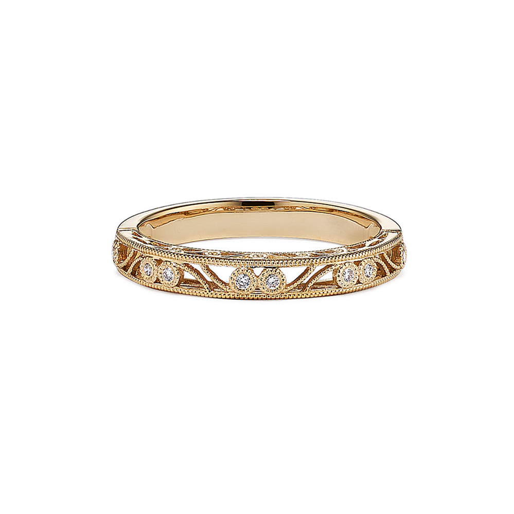 Branches of milgrain detail dotted with hand-matched natural diamond accents surround this romantic, vintage-inspired engagement ring setting. Crafted in warm 14-karat yellow gold, its beautiful botanical halo is waiting to house the marquise center stone of your choice in a unique east-west (horizontal) orientation. For more information on selecting your center stone, Live Chat online, call a customer service representative at 1-866-467-4263, or visit one of our store locations.