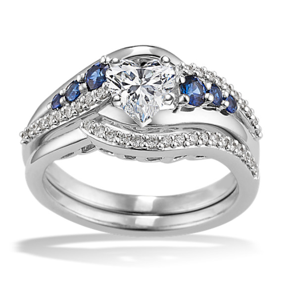 Natural sapphire and diamond accents add bold color and sparkle to this 14-karat white gold wedding set. Add the center stone of your dreams to complete this gorgeous look. For more information on selecting your center stone, live chat online, call a customer service representative at 1-866-467-4263, or visit one of our store locations.
