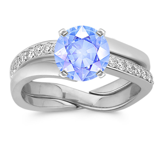 Diamond Wedding Set with Pave Setting with Round Ice Blue Natural Sapphire