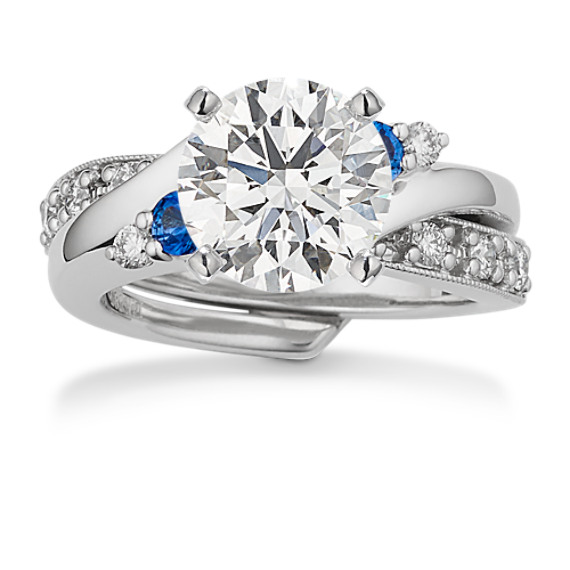 This stunning wedding set combines sparkle and color, with natural diamond accents throughout and traditional blue natural sapphire side stones in the engagement ring. Delicate milgrain detailing along the wedding band adds a touch of vintage-inspired charm. Crafted in bright 14-karat white gold, both rings are designed to lock together so they stay in place. Just add the center stone of your dreams to make this set complete. For more information on selecting your center stone, live chat online, call a customer service representative at 1-866-467-4263, or visit one of our store locations.