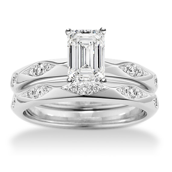 Angular clusters of natural diamonds decorate this geometric wedding set for a chic and sophisticated look. Add the center stone of your dreams to complete this romantic 14-karat white gold set. For more information on selecting your center stone, live chat online, call a customer service representative at 1-866-467-4263, or visit one of our store locations.